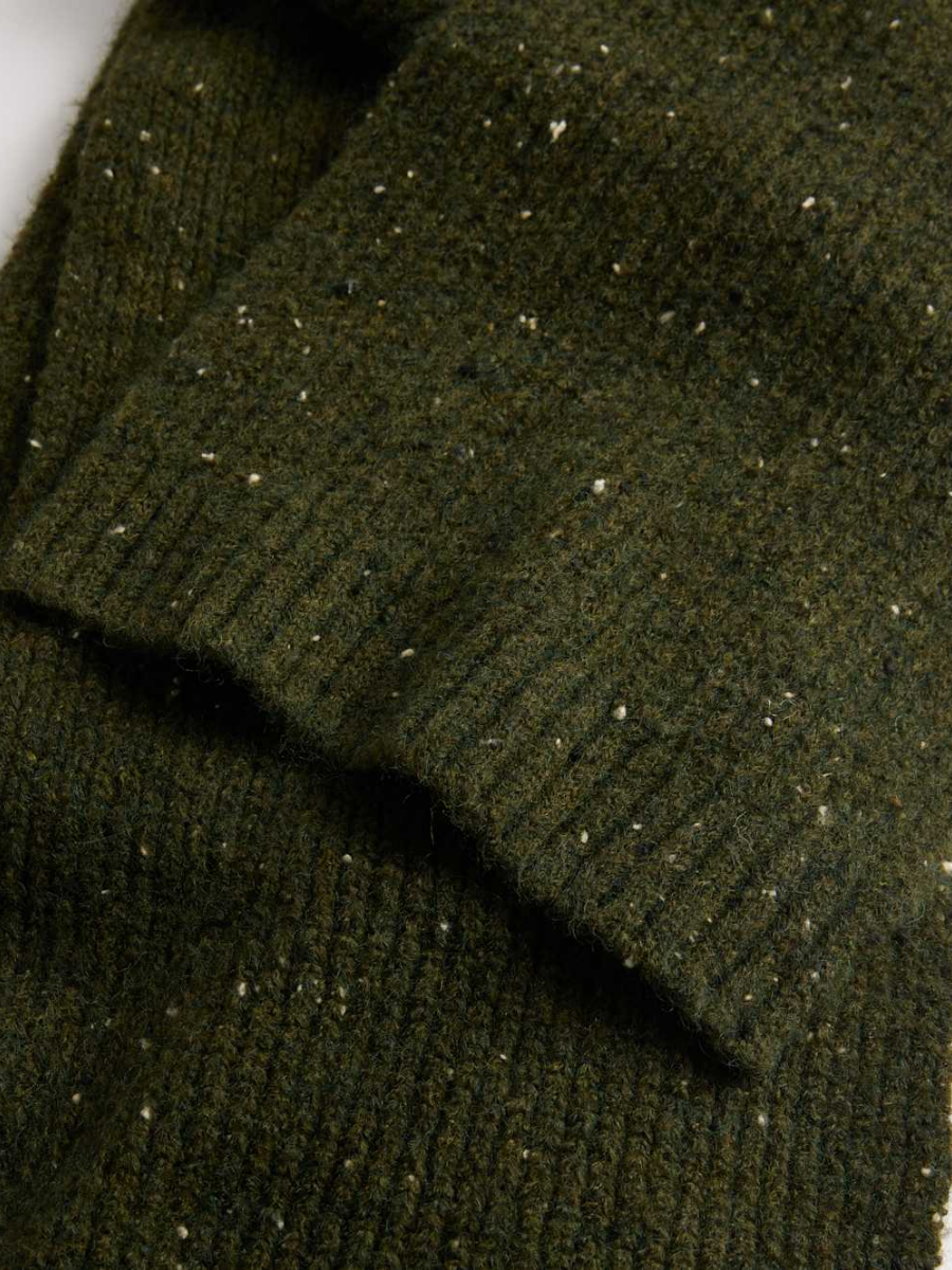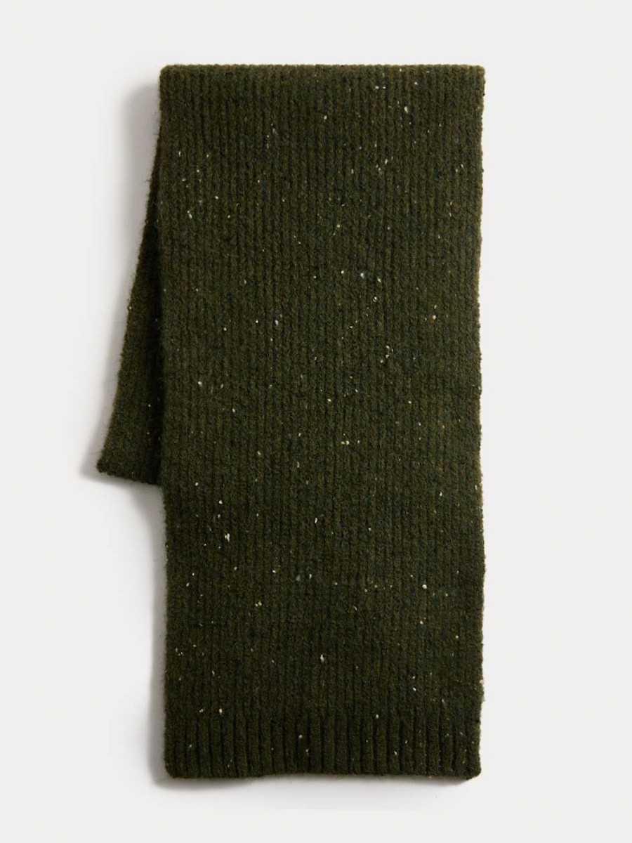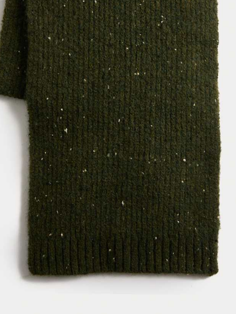 Keep warm in style with this neppy scarf. Yarn includes stretch for comfort and a touch of wool for warmth.